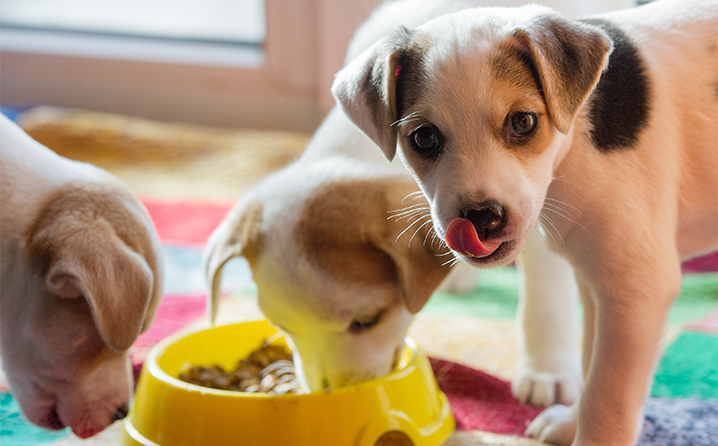 Existem alguns alimentos secos no mercado indicados para filhotes, que além de possuírem o tamanho do grão adaptado também podem ser oferecidos com a opção ao molho, sendo possível adicionar um pouco de água até que a ração fique com o aspecto de papinha, facilitando a ingestão pelo filhote.
